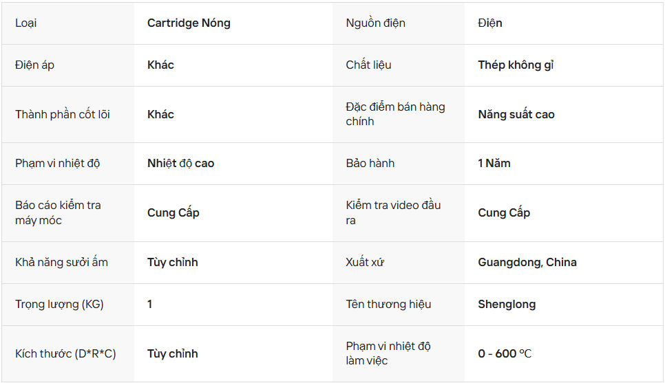 Điện trở cây 1 đầu là dòng điện trở công nghiệp chuyên dùng trong các hệ thống gia nhiệt, với thiết kế một đầu cấp điện và phần thân gia nhiệt được tối ưu để truyền nhiệt nhanh, ổn định. Sản phẩm thường được sử dụng trong môi trường yêu cầu độ bền cao, khả năng chịu nhiệt tốt và hoạt động liên tục trong thời gian dài.