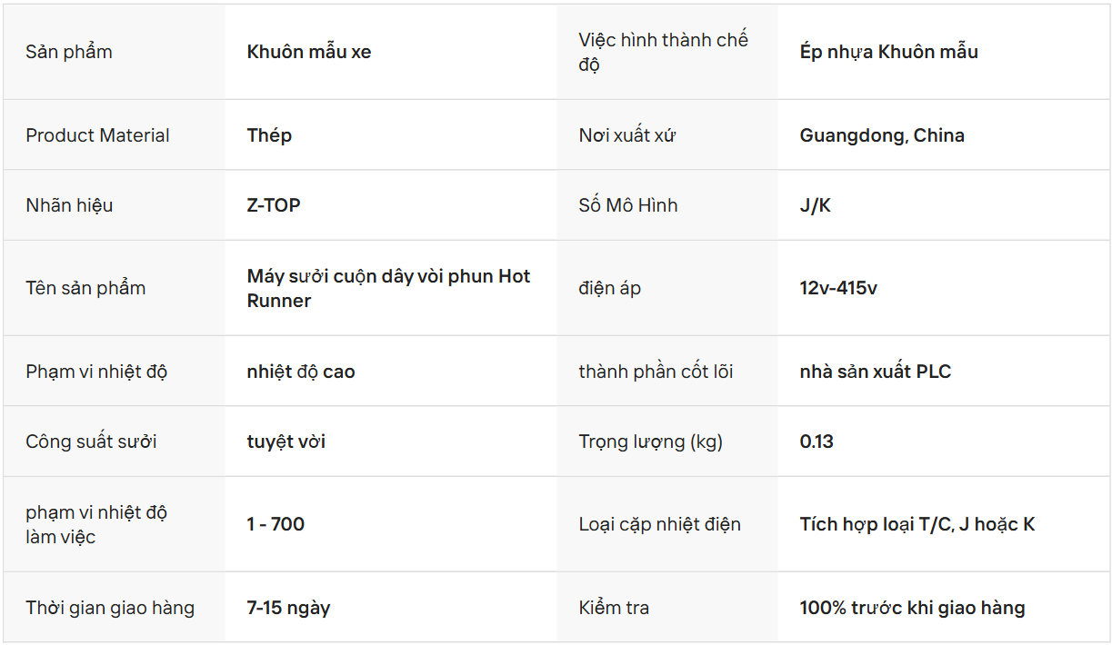 | Cấu tạo dây | 2 dây nguồn + 2 dây dò nhiệt loại K + 1 dây TE (Tiếp địa) |