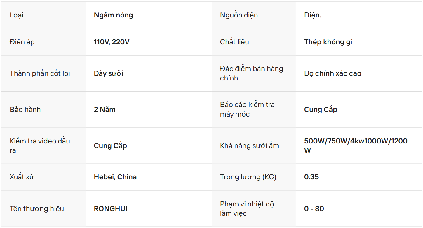 | Dây điện trở | Hợp kim Cr20Ni80 (độ bền nhiệt cao) |