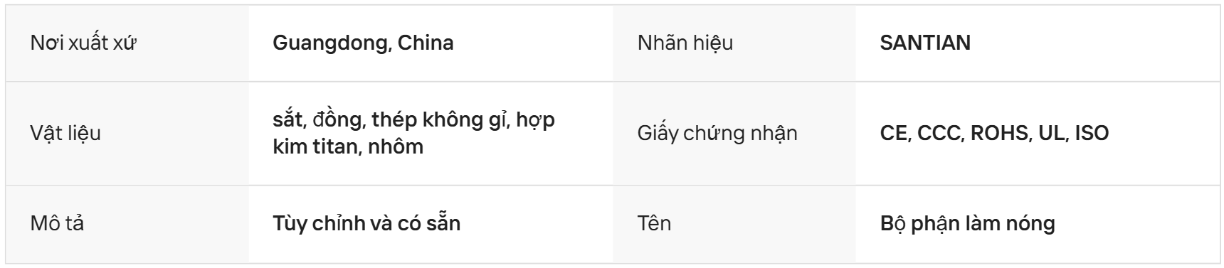 | Hiệu suất gia nhiệt | Khả năng chịu nhiệt bề mặt lên đến 1300°C, giúp nước sôi nhanh chóng. |